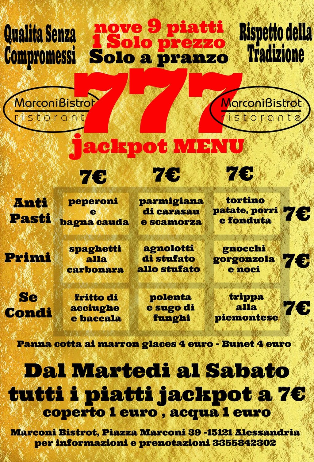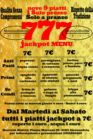 !!!! IL NUOVO MENU JACKPOT !!! NOVE PIATTI A SOLO 7 EURO CADUNO - ORA CON PIATTI INVERNALI - SOLO A PRANZO